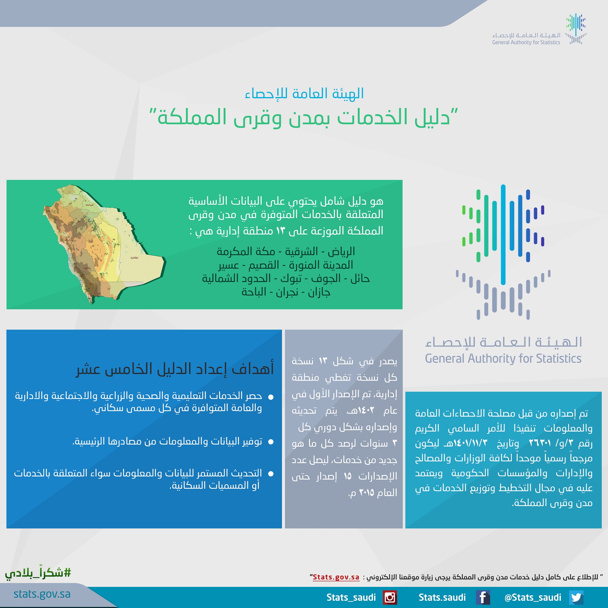 ” الإحصاء ” تطلق الدليل 15  للخدمات المتوفرة في  كافة مناطق المملكة