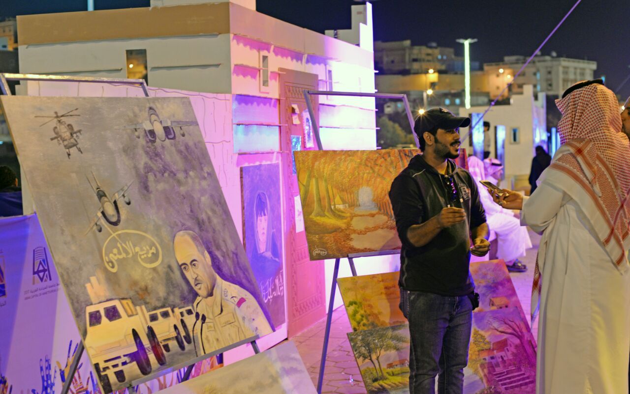 جسد الجندي الفنان مريع الألمعي في شارع الفن ، البطولات التي عايشها وخاض غمارها مع جنود الوطن البواسل عبر لوحة فنية رسم فيها المتحدث الرسمي لقوات التحالف اللواء ركن أحمد عسيري ، وطائرات الأباتشي ، ومقاتلات الـ F15.