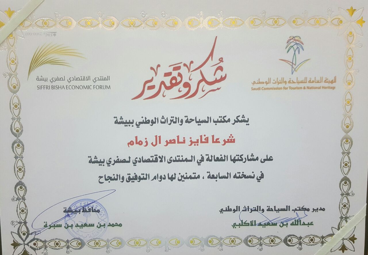 كما كرم الاكلبي السيدة شرعاء فايز مالكة متحف الحيفة التراثي، وذلك على مشاركتها في فعاليات المنتدى الاقتصادي لصفري بيشة