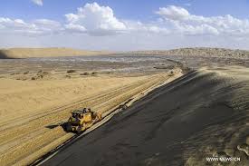 ويذكر أن العمال قد أنجزوا حوالي 100 كيلومتر من الطريق حاليا، محتملين صعوبات ومشقات في ظروف قاسية مثل أشعة الشمس القاسية ودرجات الحرارة المتفاوتة بشكل حاد والعواصف الرملية .