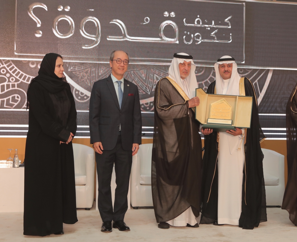 “كاوست” للابتكار في تقنیات الحج والعمرة” وتقدمھا جامعة الملك عبدالله للعلوم والتقنیة بقیمة ملیون ریال. جاء ذلك لدىافتتاح سموه فعالیات الأسبوع الثقافي، لملتقى مكة الثقافي، “كیف نكون قدوة؟” والذي جاء ھذا العام حول موضوع ” كیفنطور مدننا لخدمة الحج والعمرة”.