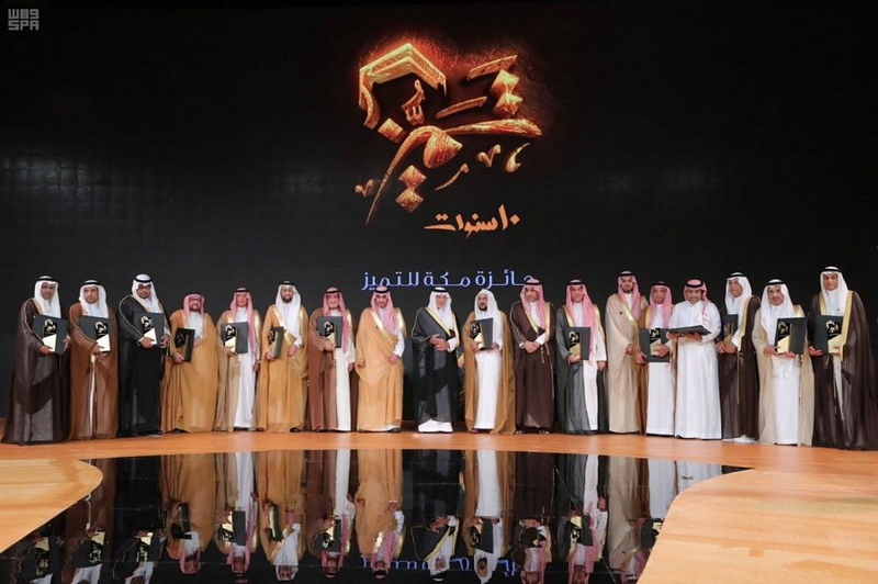 كرم الأمير خالد الفيصل، مستشار خادم الحرمين الشريفين أمير منطقة مكة المكرمة اليوم، الفائزين بجائزة مكة للتميز في دورتها العاشرة، وذلك بحضور صاحب السمو الملكي الأمير بدر بن سلطان نائب أمير منطقة مكة المكرمة وعددٌ من أصحاب السمو الأمرء والمعالي .