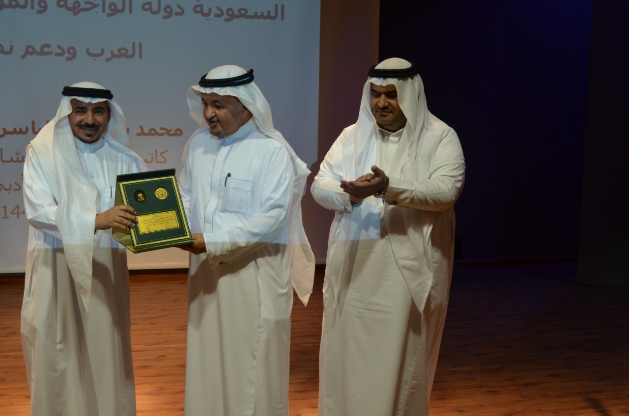 في نهاية المحاضرة قدم رئيس النادي د احمد مريع عسيري رئيس نادي الاحساء الادبي الدكتور ظافر الشهري ليقدم درع التكريم للمحاضر ومدير الحوار