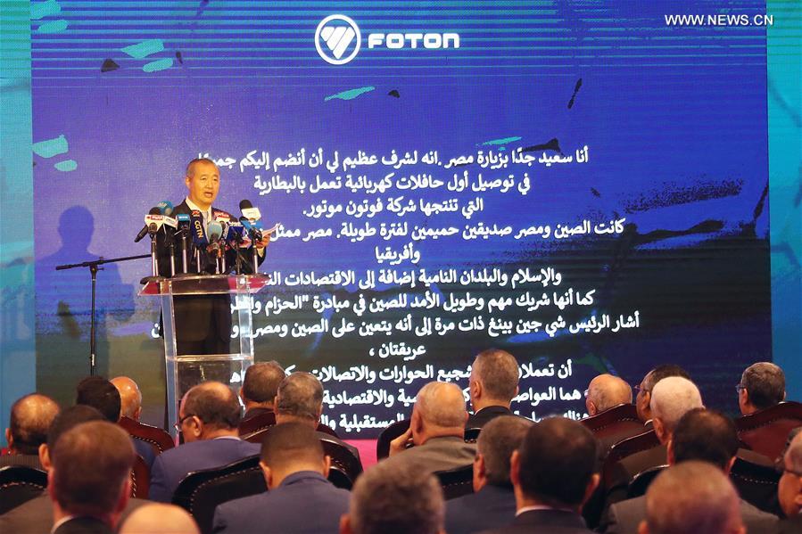 وتابع أن حكومة بكين تدعم الشركات للمشاركة في بناء البنية التحتية في الدول الشريكة في مبادرة الحزام والطريق، مشيرا إلى أن التسليم السلسل لأول دفعة من حافلات فوتون الكهربائية للقاهرة أفضل مثال على ذلك.