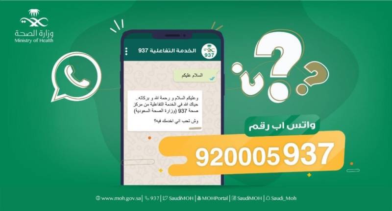 ويعمل المركز على مدار اليوم 24/7 بكل قنواته ( الرقم الموحد 937• “تويتر” saudimoh937 البريد الإلكتروني 937moh.gov.sa• الدردشة الفورية الموجودة في موقع وزارة الصحة الرسمي