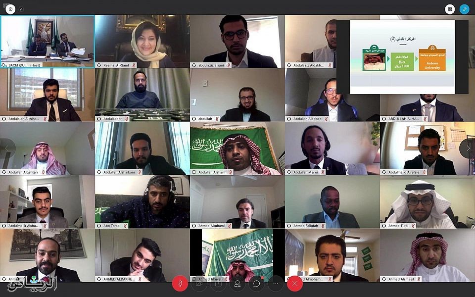 وافتتحت الاجتماع بنقل تحيات القيادة الرشيدة – حفظها الله – لجميع الطلاب والطالبات المبتعثين في الولايات المتحدة، كما قدمت سموها الشكر لجميع الأندية الطلابية على مجهوداتهم من خلال الأنشطة والخدمات التي قدموها لإخوانهم وأخواتهم المبتعثين ولمجتمعاتهم المحلية خلال جائحة كورونا، وإظهار الصورة الحقيقية لشبابنا السعودي.
