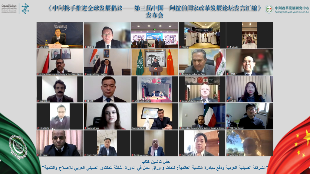وشهد الحفل تدشين ونشر الكتاب بعنوان “الشراكة الصينية العربية ودفع مبادرة التنمية العالمية: كلمات وأوراق عمل في الدورة الثالثة للمنتدى الصيني العربي للإصلاح والتنمية”، كما استقطب الحفل أكثر من 50 دبلوماسيا وباحثا من الجانبين الصيني والعربي، حيث كانت المشاركة عبر الإنترنت أو حضوريا.