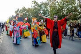 وشهد المهرجان تنظيم مسيرة كرنفالية في شارع الفن بأبها، على عربات تم تصميمها لتحاكي الجانب الثقافي والفلكلوري للدول المشاركة، إضافة إلى الأزياء التراثية والشعبية التي تمتاز بها الدول المشاركة لتضيف تنوعاً ثرياً في المهرجان الذي تشارك فيه 16 فرقة سعودية و 14 فرقة دولية تقدم حوالي 32 لوناً ادائياً جبلياً من داخل المملكة وعدد من دول العالم.