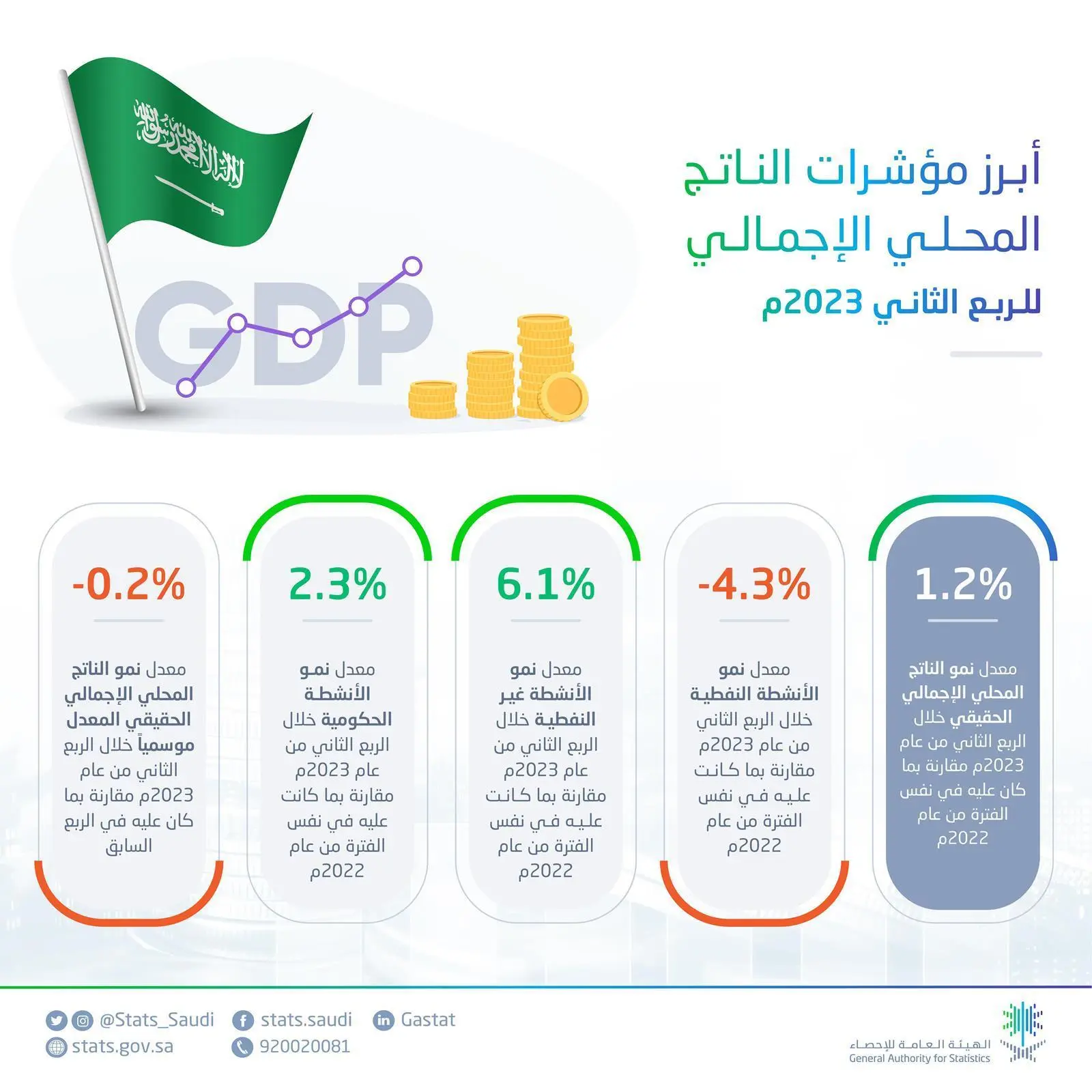 الأنشطة غير النفطية تنمو بمعدل 6.1٪ خلال الربع الثاني من عام 2023م وتقود الاقتصاد السعودي إلى تحقيق نمو قدره 1.2٪