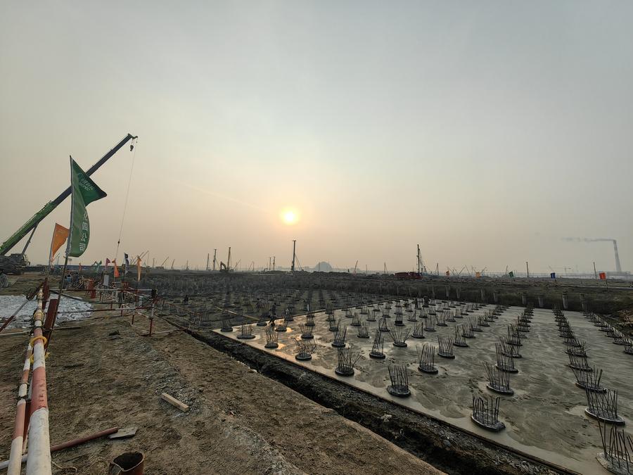 وفي موقع المشروع المُقام في منطقة لياوبين الساحلية للتنمية الاقتصادية والتكنولوجية بمدينة بانجين، يُلاحظ أن عمليات الإنشاءات للمشروع تجري على قدم وساق، حيث تتنقل الآلات بين مكان وآخر، فيما ينهمك العمال في تنفيذ أعمالهم بهمة ونشاط.