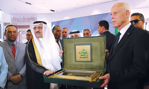 وأطلع السفير الصقر الرئيس قيس سعيّد، على ما يحتويه الجناح من إصدارات ثقافية ومعرفية تعكس التطور الذي تشهده المملكة في ظل القيادة الرشيدة، ثم قدم له درعًا تذكارية بهذه المناسبة.